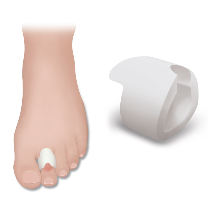Gel polimero ad anello con rinforzo, soffice ed elastico, utilizzato per proteggere callosità dorsali e laterali delle dita dei piedi.