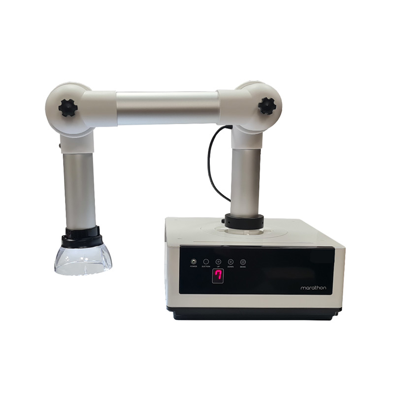 Aspiratore per polveri di limatura con braccio a 2 snodi in alluminio e luce Led integrata.
