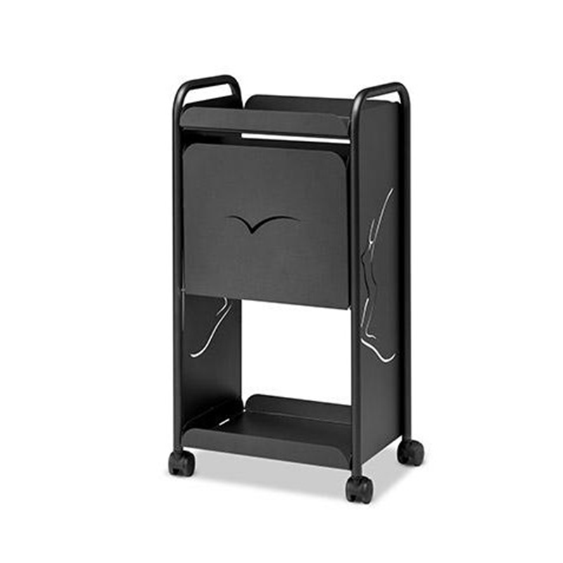 Carrello con struttura in acciaio verniciato a polvere epossidica. Ideale per la cera, dotato di ripiani per fornelli scalda cera, manipoli e tutto il materiale necessario. Completo di un contenitore portarifiuti a scomparsa.