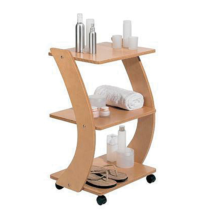Carrello a tre ripiani realizzato in legno multistrato di betulla con ripiani in legno e disponibile in due diverse finiture.