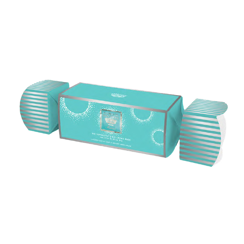Cofanetto Caramella Bio Saponetta 150 g + Bio Crema Mani 75 ml 9 fragranze, 12 pezzi assortiti.
