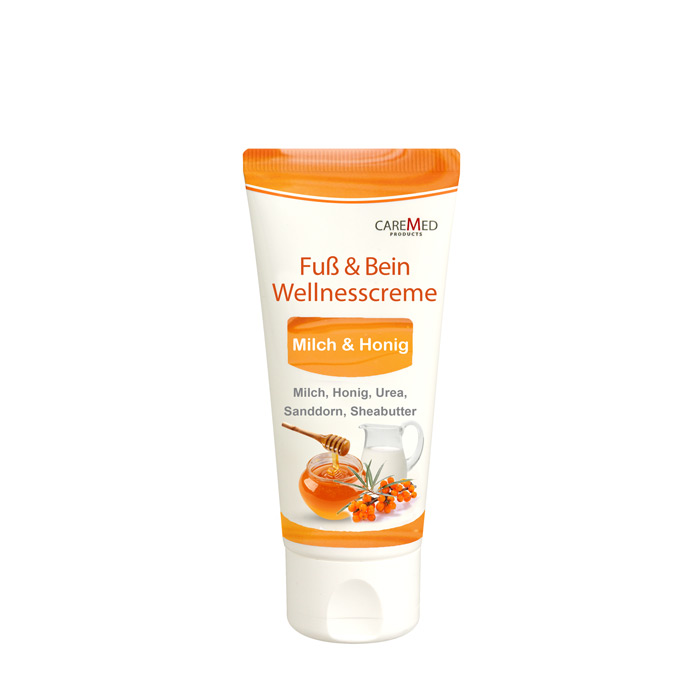 Crema benessere per gambe e piedi a base di latte, miele, burro di karitè, urea, olio di semi d’uva e acido ialuronico, per una pelle elastica e piacevolmente morbida. È priva di allergeni, parabeni e coloranti artificiali. Applicare quotidianamente e massaggiare con movimenti circolari fino a completo assorbimento.