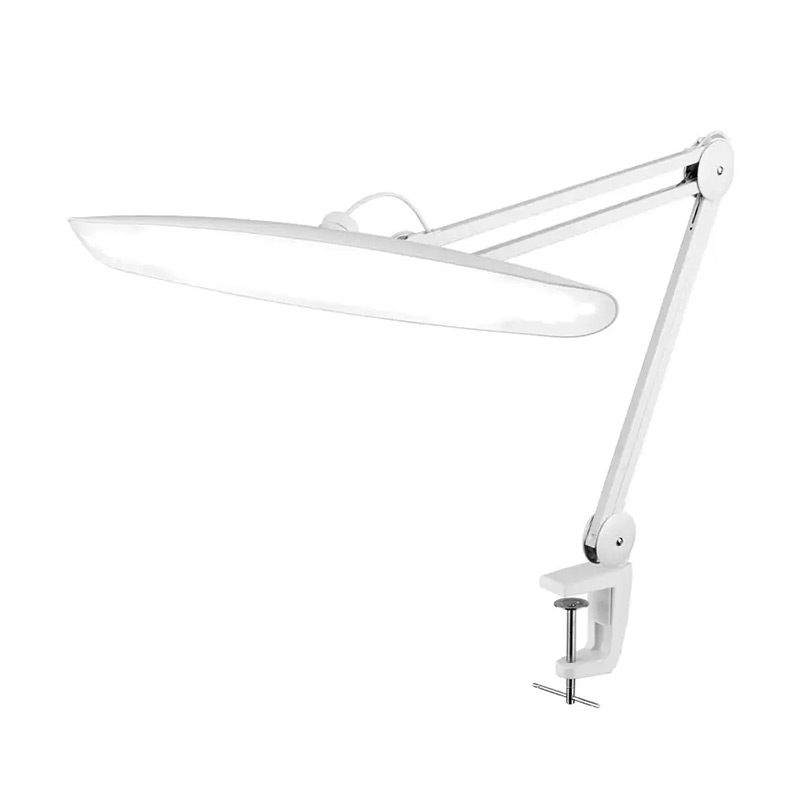 Lampada Led ad illuminazione professionale, progettata per illuminare in maniera uniforme la postazione di lavoro, senza creare ombre. Perfetta per lavori di precisione e per superfici estese, poiché ogni dettaglio risulti visibile e ben illuminato. È possibile scegliere diverse intensità di illuminazione e riduce al minimo l’affaticamento degli occhi. Il braccio è flessibile e regolabile, si fissa con un morsetto alla postazione di lavoro senza ingombrare sul piano di appoggio.