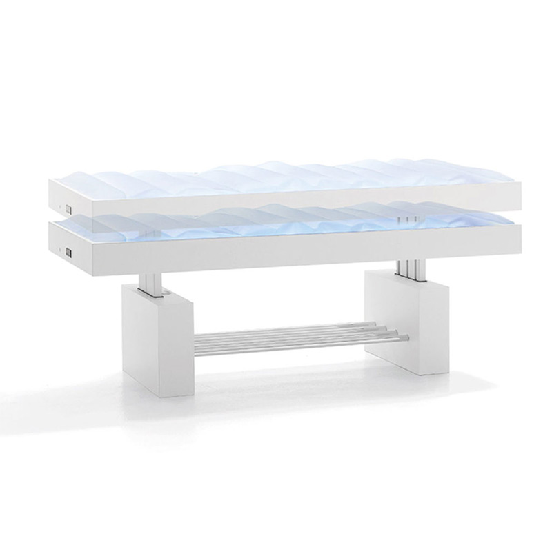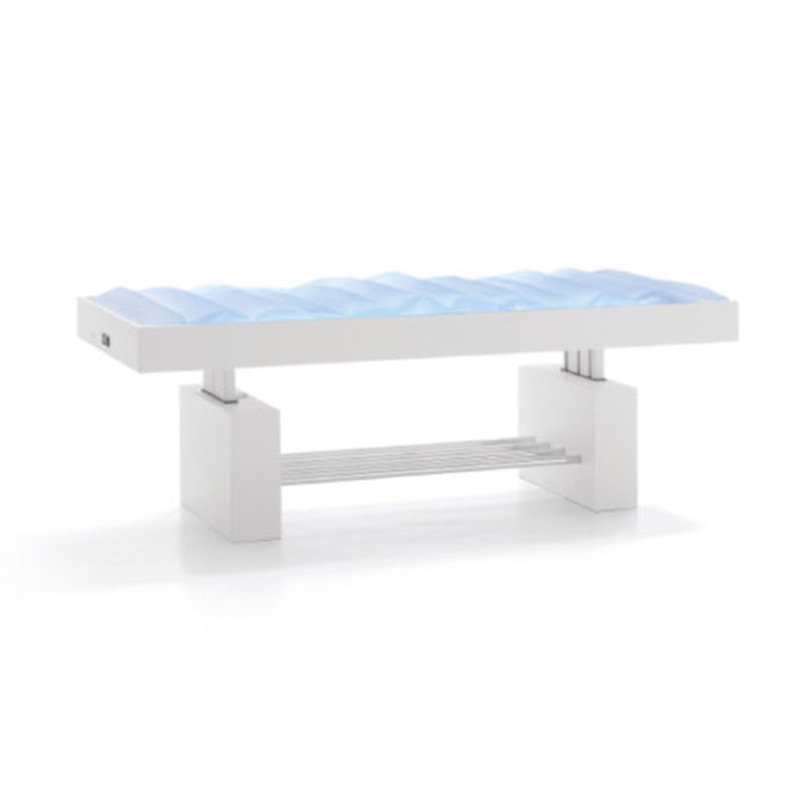Distenditi e goditi il relax ottenuto da una fantastica combinazione di tepore e colore che sprigiona energia, vitalità, armonia. Lettino Spa multifunzionale che regala al cliente la possibilità di distendersi su un materassino ad acqua, unico nel suo genere. La temperatura può variare da 30°a 42° C. Il lettino Andromeda Hydro Mover è dotato di un sistema di sollevamento elettrico, tramite pedale, che permette di raggiungere un’altezza massima di 79 cm ed una minima di 57 cm, per un perfetto comfort dell’operatrice. Realizzato in legno multistrato con materassino ad acqua composto da 3 settori. Piano riscaldato e illuminazione a Led con funzione Cromo Relax.