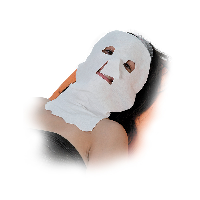 Maschera per viso e collo in sontara, utilizzata per imbibirla di liquidi come tonici e lozioni riequilibranti.