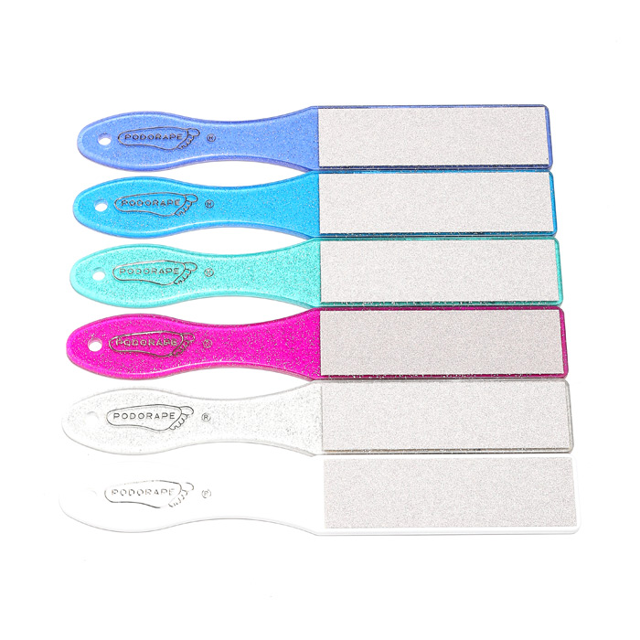 Raspa abrasiva resistente, robusta, con due grane differenti. Disponibile in diversi colori. Top Quality.