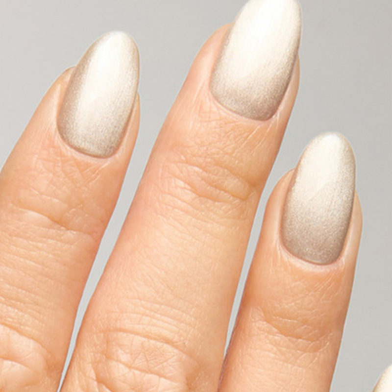 Glitter sottile e ipnotico che crea un’unghia metallica multi-dimensionale. Finitura argentata effetto seta.