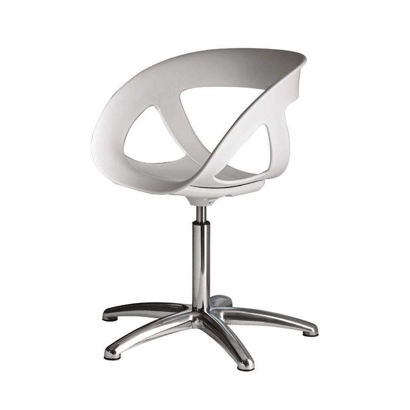 Elegante e comoda poltrona con seduta realizzata in tecnopolimero. Base cromata e altezza regolabile.