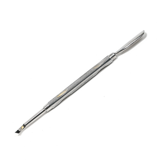 Spingipelle in acciaio inox autoclavabile, a due punte, una che permette di spingere indietro le cuticole più resistenti, e una che si utilizza per sollevare e pulire il bordo inferiore della lamina ungueale. Ottimo per la manicure a secco e smalto semipermanente.
